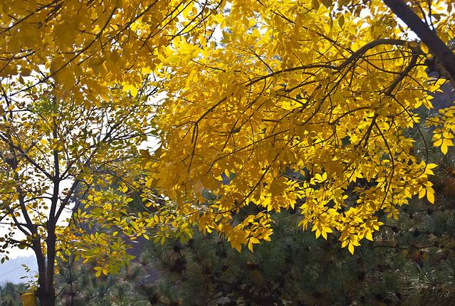 本来是想去紫竹院的,突然看见对面的动物园,几十年没进过的地方了,就信步进去转了转,看看黄叶和猴子,恩,院子中的一棵白腊色彩艳丽,不同与其它白腊只是黄色,这棵树稍的叶子是红色的,而且一点不干,下旁边坐下瞅了半天才出公园。没有去找古建筑,下次再专门来欣赏。