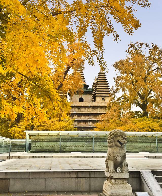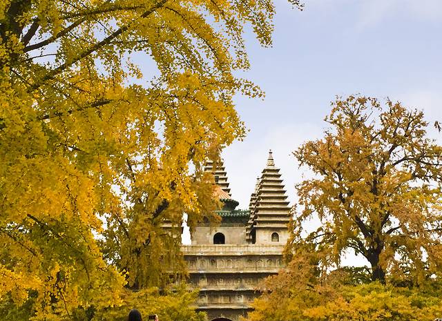 虽然是阴天,但游人却也不少,五塔寺这个季节的确是漂亮,除了古银杏还有挂满枝头黄黄的柿子,配上古塔古碑,完美的画面韵味无穷呀!