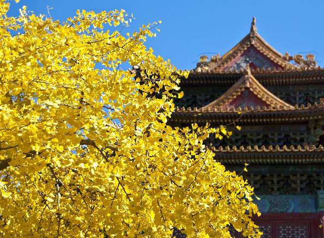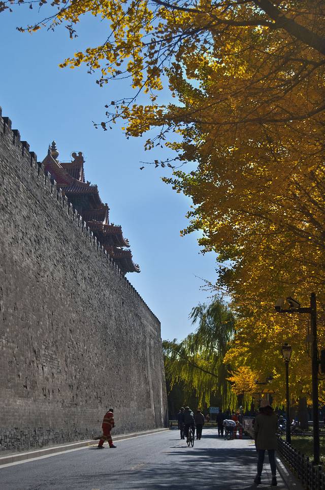 今天终于晴了,因是周一,便决定我的赏秋散步,路线:东华门-午门-西华门-中山公园,非常好的一条路线,特别是西华门处一排金黄的银杏,趁着宫墙那才是经典的北京之秋。