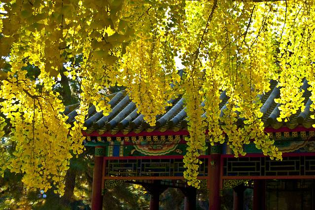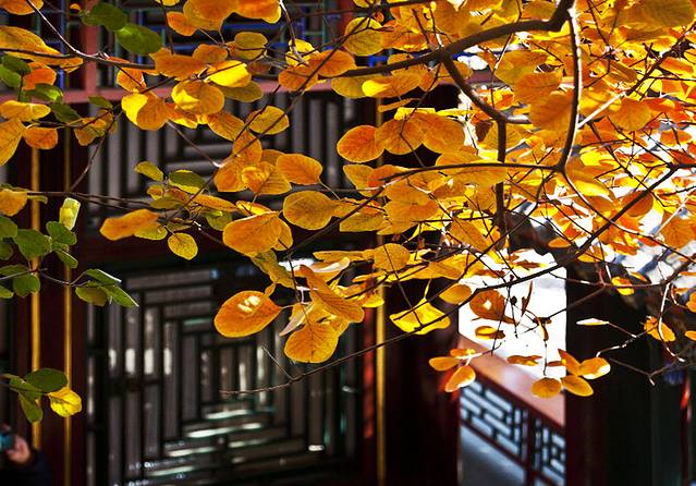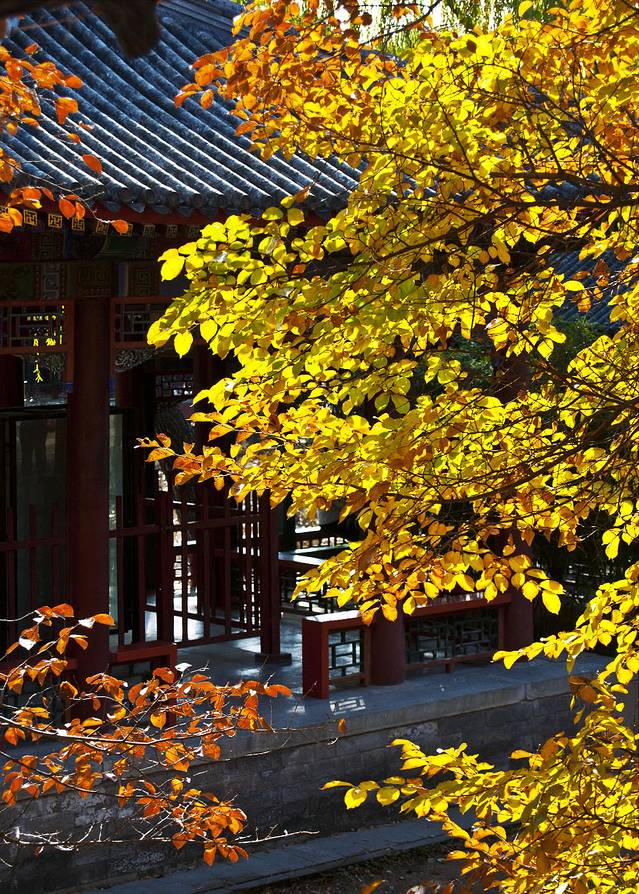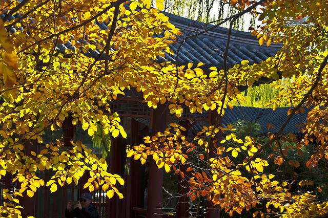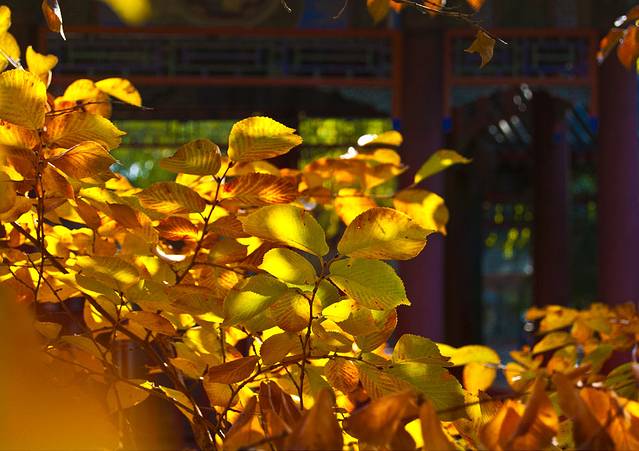 北京这些公园秋天的内容也是很多,红黄的叶子加上长廊或殿亭做背景,就美得不像话了。