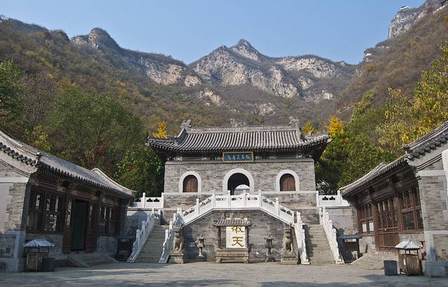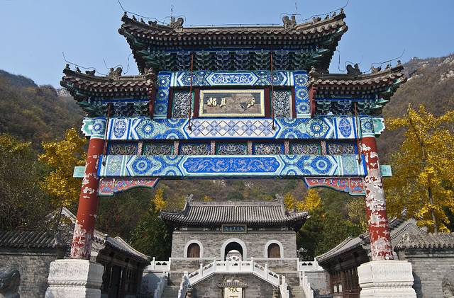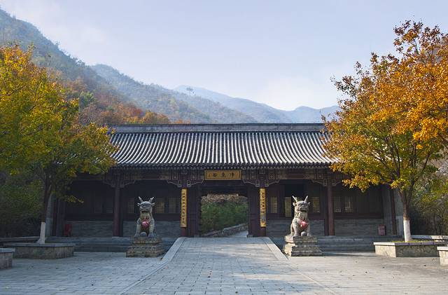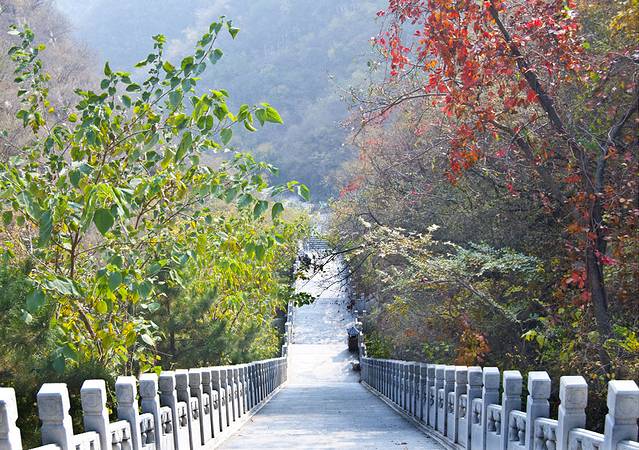 在半路的那个亭子里坐会喝点水,又慢慢赏着到山上的殿前坐会儿,远处的秋色也不错。