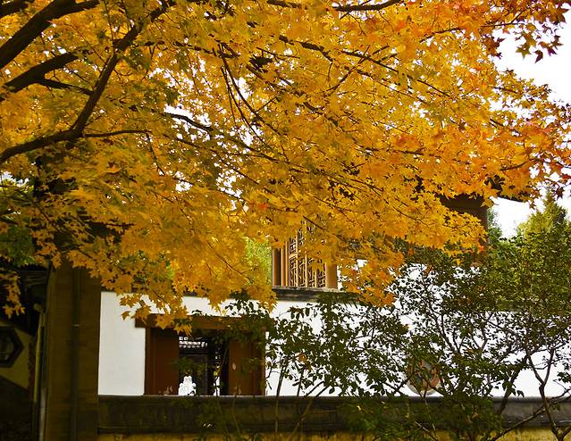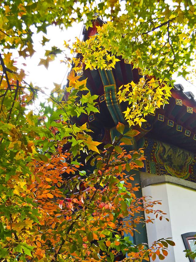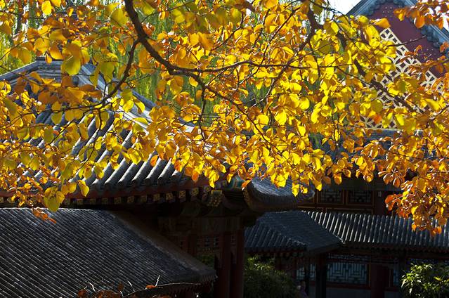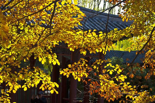 中山公园的秋天也美得动人,银杏红墙,惠芳园赏兰,唐花坞赏菊。