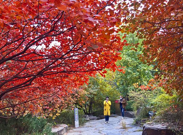北京的秋天真是美呀,愿天气感知我的心,不要刮风降温,让这些美丽的叶子多在树上挂些日子,让我们赏个够。