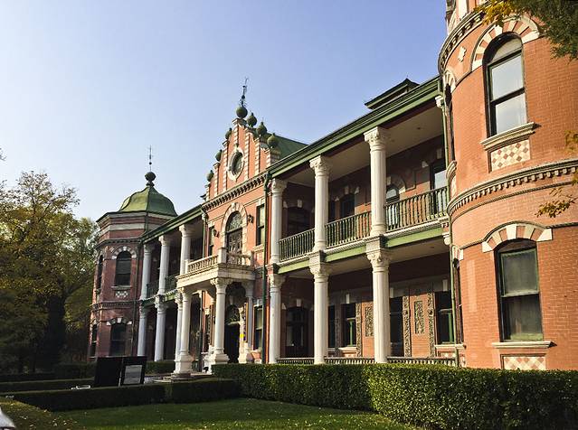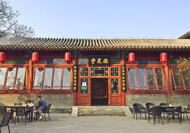 畅观楼南侧就是鬯春堂,建于光绪三十四年(1908年),是一座有着中国传统格局的建筑。鬯春堂的屋顶结构,由三个房脊相连而成,在建筑中叫做“三卷”,从侧面看得很明显。整个建筑前廊后厦,穿堂门,房屋四壁全是高大的玻璃窗,而堂内的地板则全是金砖铺就。目前鬯春堂是个环境优雅的阅览室,里面只三五个人,安静的午后在这里小坐很是惬意。