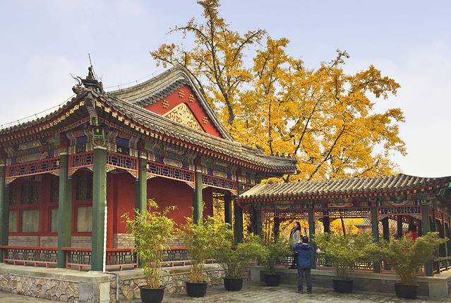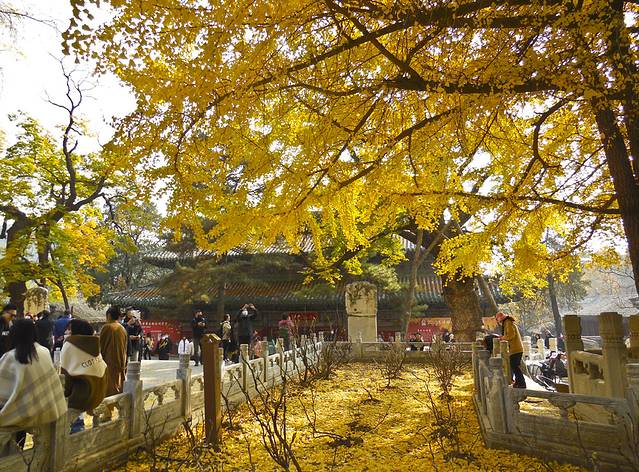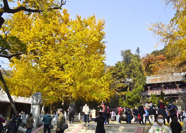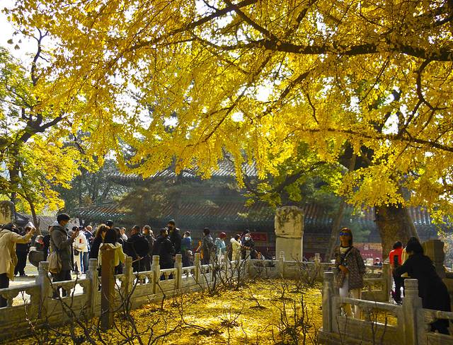 今年决定 再去游潭柘寺,9月份上塔林开放了,也应该去一次的。三年前去的那次东侧的帝王树叶子全黄了,西侧的配王树还是绿的,算了日子今天比那年要晚些,最好配王树黄,便可欣赏到与上次不同的内容。