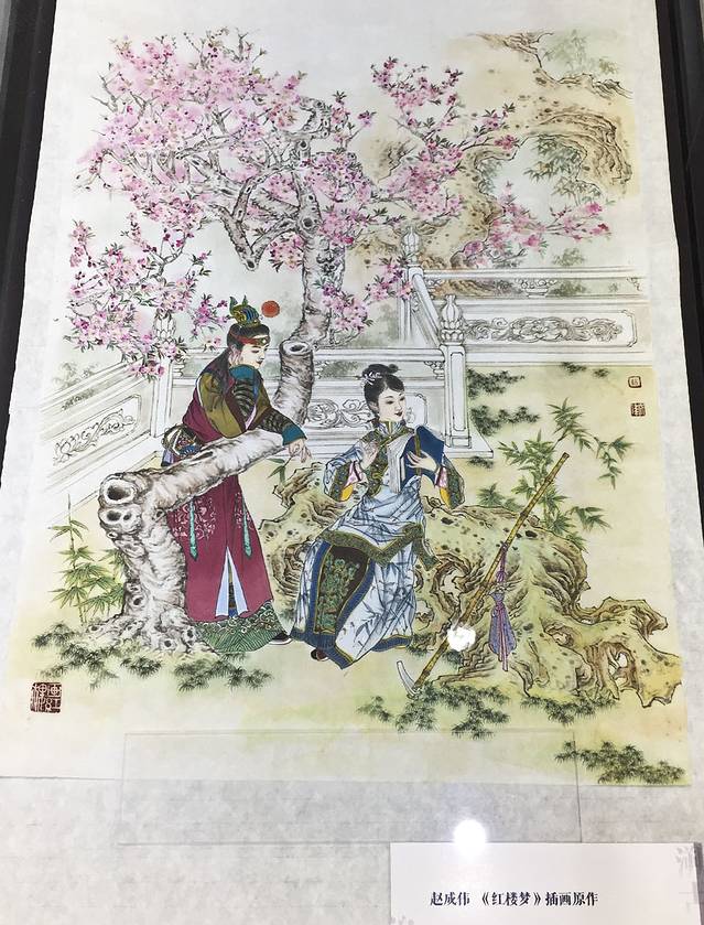 殿内的展览是古代书籍的插画,也是很有意境。