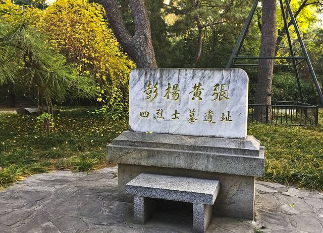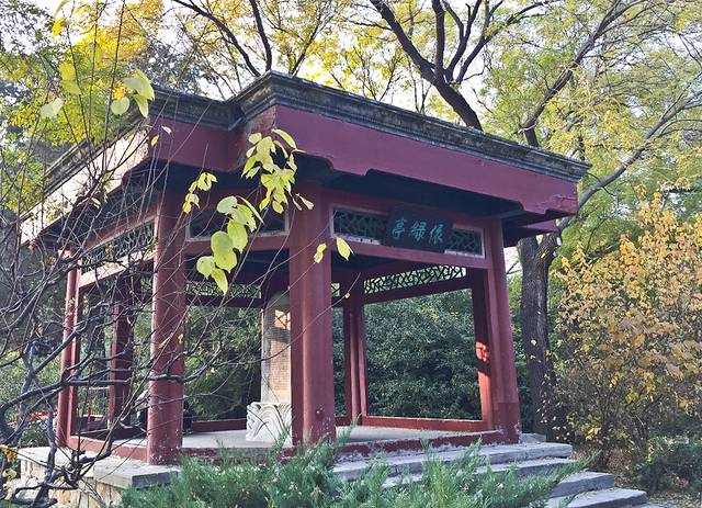 出了鬯春堂的院子,东面一片草地中间是当年农林总长宋教仁纪念碑,1912年4月至12月,他一直居住于鬯春堂。