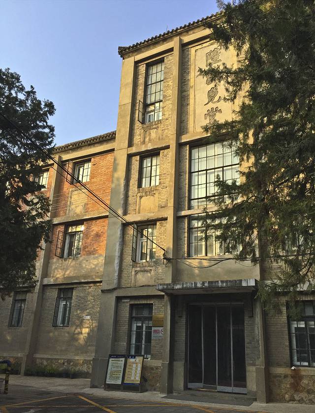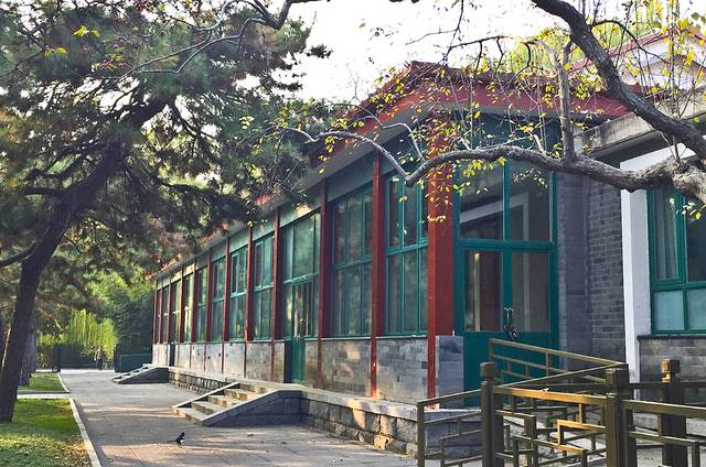 继续向东走,水鸟栖息的湖面,就可以看到一座红灰相间的砖楼掩映在高大的树木之中。这里便是建于1934年的陆谟克堂,是一座利用法国退还庚子赔款,为纪念法国生物学家拉马克而修建的一所中西合璧的三层小楼。是中国最早的植物学科研楼,也是中国现代植物科学研究的基地。建筑外墙的砖石为灰红两色,当年这里的1-2层是实验室和图书馆,而3层则是标本室。1949年,在这里建立了中国科学院植物分类研究所,1953年改为中国科学院植物研究所。目前看着应该还是科研类的办公室。