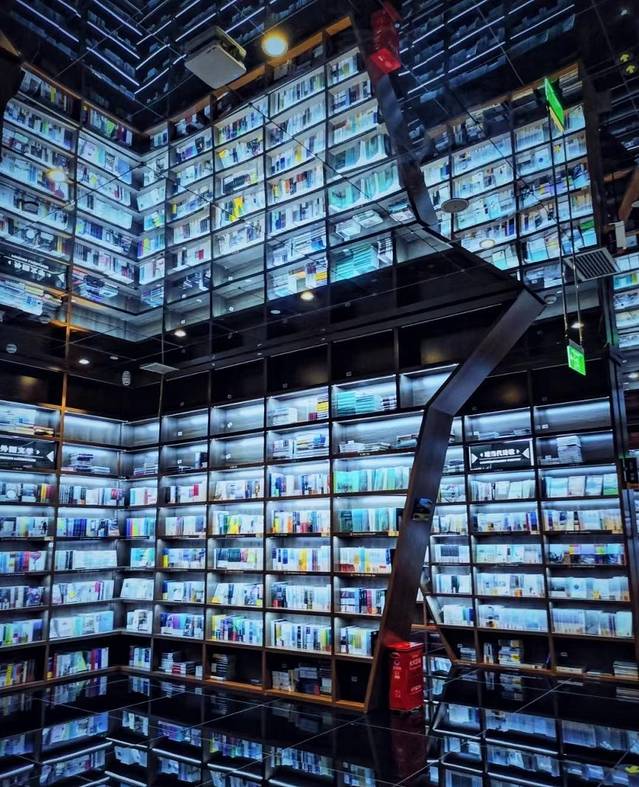 贵阳的这家钟书阁和我在其他地方看到的钟书阁最有特点一个地方就是它除了秉承钟书阁一贯的空间和镜面的魔幻设计,还融入了贵州当地的一些文化特色,在里面真的是在知识的海洋里遨游(by the way,还可以去旁边的贵州省博物馆参观,体验贵州当地的文化特色)。