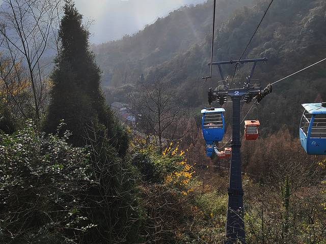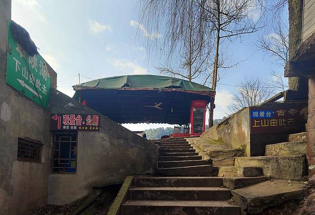 右边是金骊索道的站口,后山有两条索道,金骊索道到接近“又一村”的地方,上面还有一条“又一村”到白云古寨的白云索道。今天的行程是沿飞泉沟徒步登上白云古寨,下山乘索道下到又一村,再坐私家车下山回古镇。