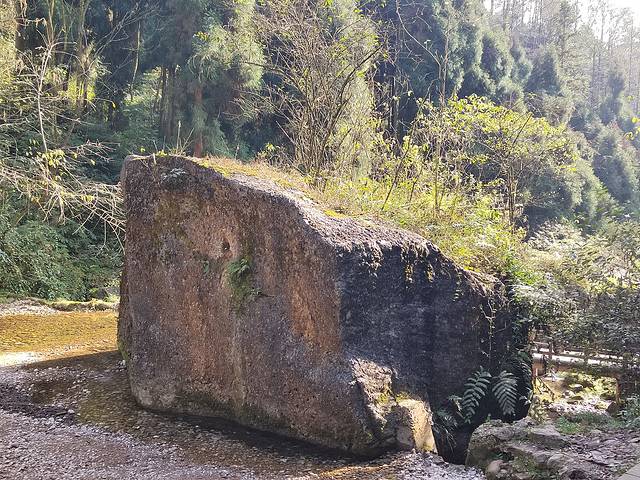 下面就是一块巨石,5.12大地震时从山上滚落下来的。