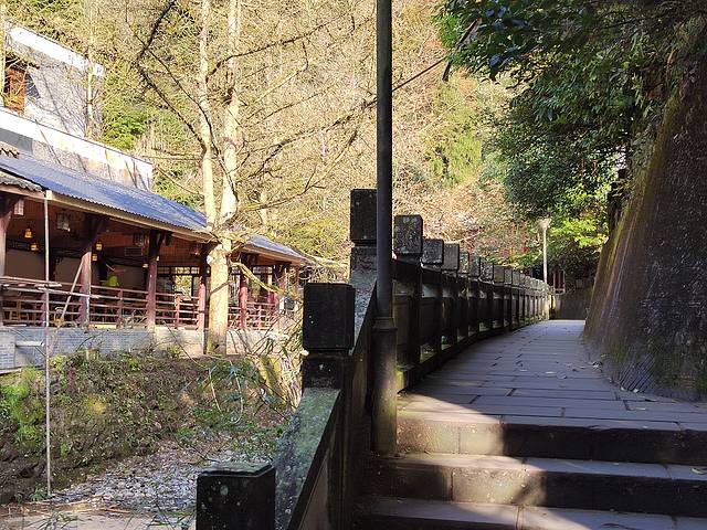 再从这里乘小车下山,30元回到古镇。过去我都是徒步下山,沿途的五龙沟景区也有很多水景,特别是龙隐峡栈道。