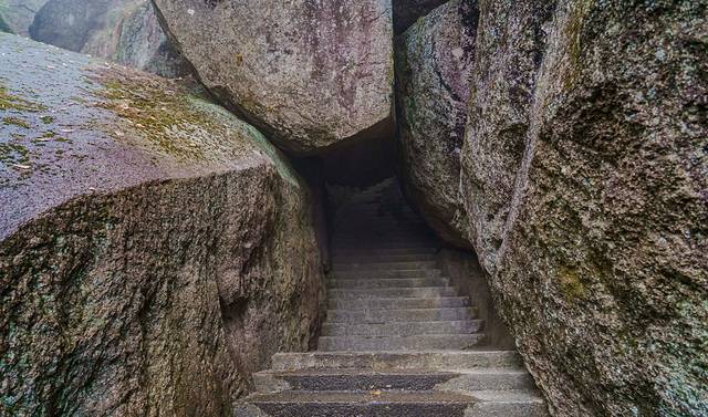 但是,光是走过的登山步道就真的已经让我很是震撼了,各种怪石、幽洞、峡谷景观分布道路两旁,一会儿走过悬崖、一会儿穿过天然石洞,还有天外飞仙般的巨石叠成的悬空石桥,实在是太不可思议,让人不由得感叹大自然的神奇。