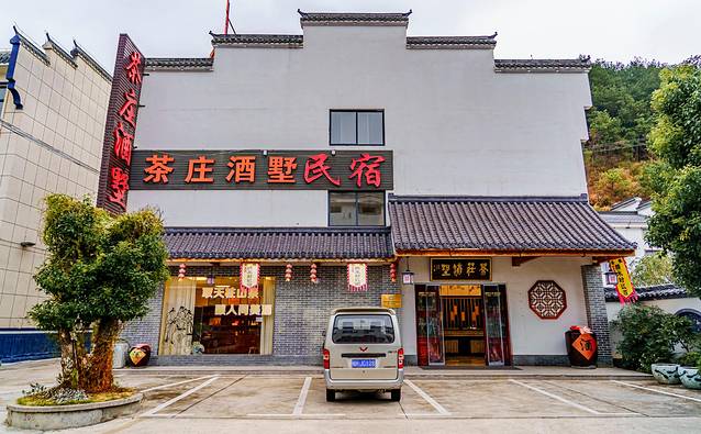 过来天柱山时,第一眼看到的便是山脚漂亮的【茶庄村】,在这里有一些酒店和民宿可以入住,而我这次预订的便是位于游客中心,旁边300米的“茶庄酒墅”,这家民宿环境不错、地段也好,夏季过来就在门外下去便是九曲河漂流,往左边走上5分钟就是一个茶田,地理位置不错、周边环境很好。