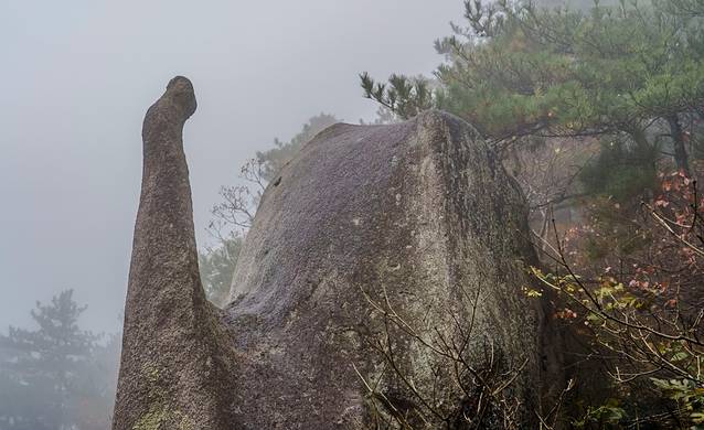 天柱山拥有全国唯一、全球揭露面积最大的超高压变质带,被地质学家们誉为“世界上最美的花岗岩地貌”,可惜这次的运气实在是不够好,上山时还只是小雨,到了上山的索道中就开始暴雨,然后一直下雨到我下山,基本没有看到山峰的模样。