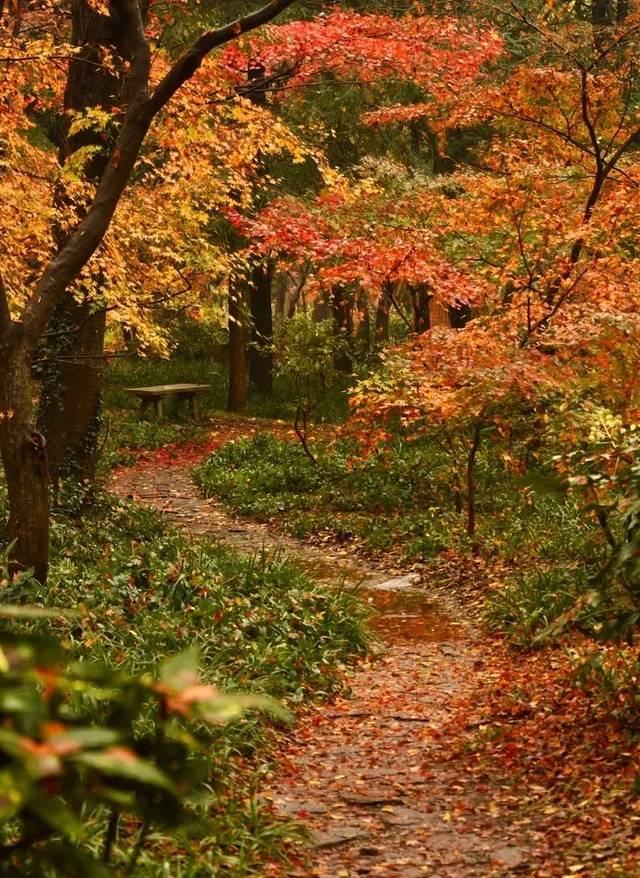 除了栖霞山,南京中山植物园红枫岗也渐入佳境......鸡爪槭、红枫、盐肤木、黄连木、榉树等彩叶树种正展现它们的美丽。明黄、浅绿、粉橙、火红……枝叶层叠,在阳光下五彩斑斓。