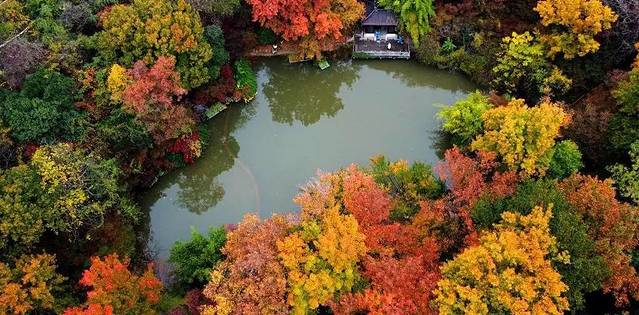 经过近几日降雨的冲刷,目前栖霞山色彩缤纷的枫叶更显鲜活亮丽。目前变色较明显的品种有红枫、鸡爪槭、枫香、榉树、山胡椒、栎树、盐肤木以及一些藤本植物等,高高低低,形成一个五彩斑斓的小世界。