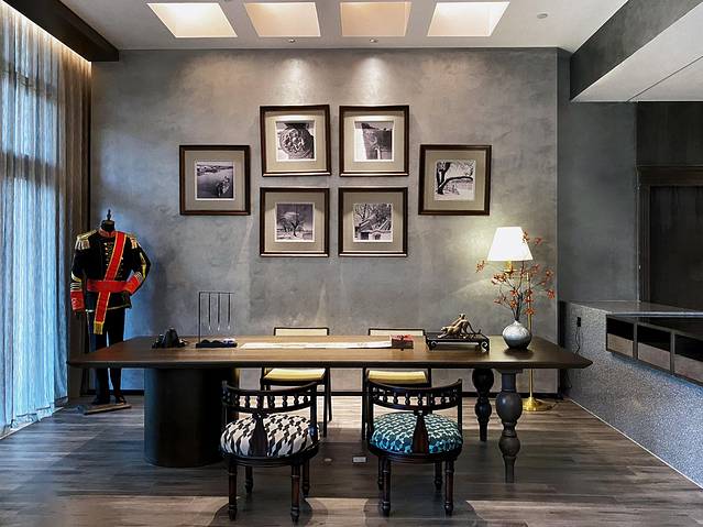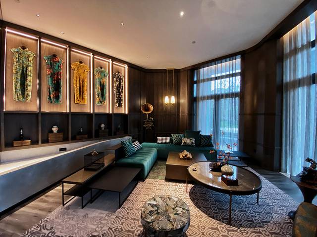 室内则是民国风的设计,从大堂的装饰、灯具到转角的公区和墙上挂着的旗袍装饰,再到充满复古元素的家居摆件和生活场景,都透露着怀旧的质感,和整座小镇散发着江南气息的古色古香的氛围也正好相辅相成。