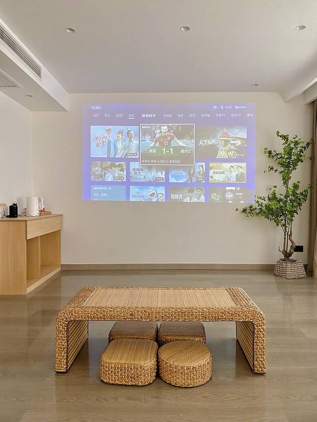 一到店,热情的老板就带我参观了整栋民宿,入住的榻榻米房间温馨舒适,大大的落地窗让室内采光非常好。这里每间房都有投影,没想到来旅行也可以爽爽大屏追剧了。床品也超级舒服的,尤其是今天泡了温泉,睡的那是相当好。