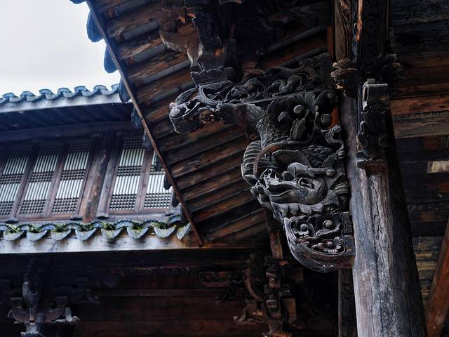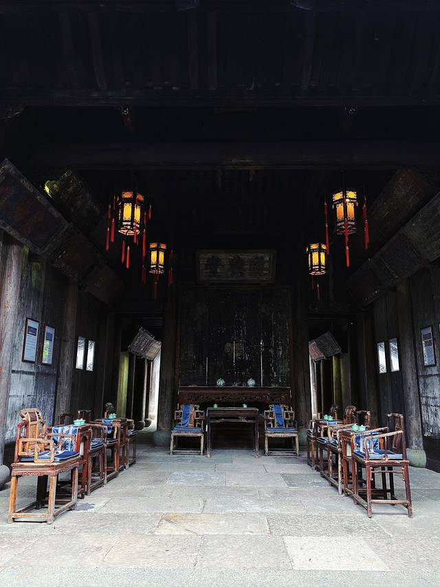 内火洞大厅,是武义当地的古民居,是一座保存完整的三进式院落,原址位于武义县吴宅村,建于清雍正二年,左右对称,是婺派建筑的典型代表建筑。