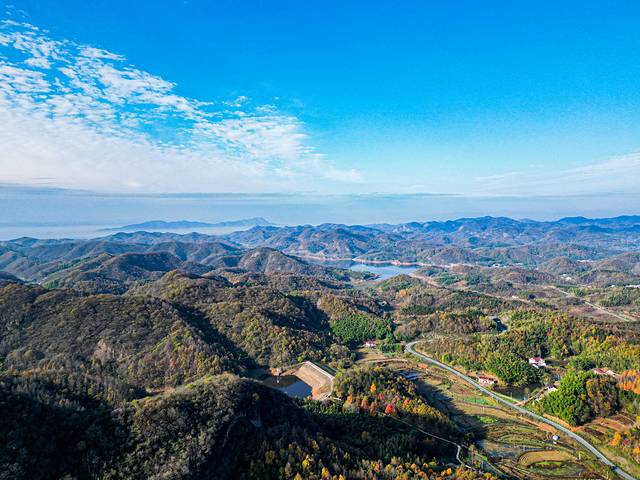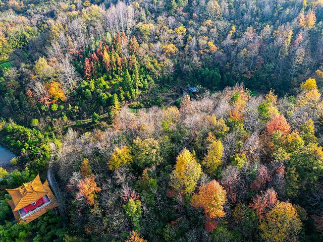 还可以慢慢往山上爬,上山的路依山而建,稍微有些陡峭,时不时还会有溪水溅下,爬山的时候可以欣赏到景区的全貌,这个季节的景色格外美丽,放眼望去皆是秋意盎然,一片片金色的海洋。