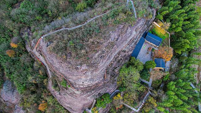 其中“雌蟾”腹内中空,寺庙位于其洞腹,名为“双蟾寺”。