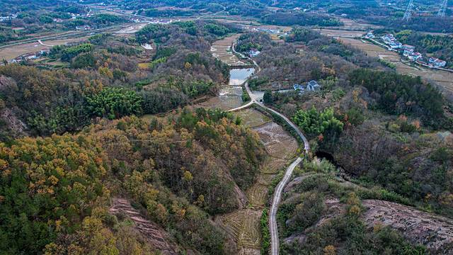 现在还没有水,航拍的时候可以看到渡槽两旁乡村的秋景。