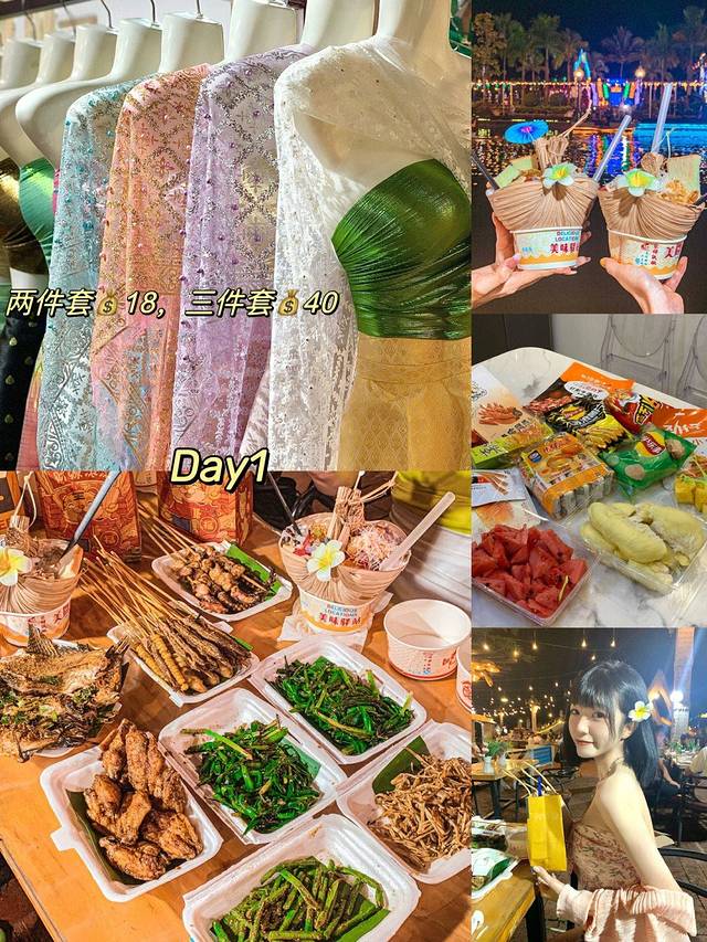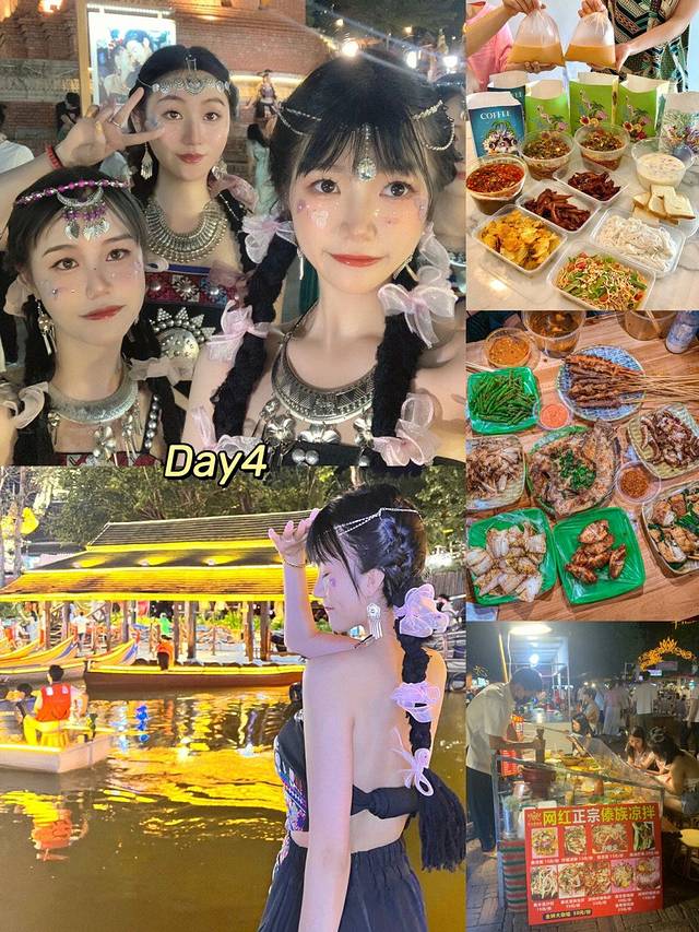 点外卖:老挝凉拌——画哈尼公主妆——逛星光夜市拍照—— 小玉傣味烧烤——回民宿吃零食喝🍺