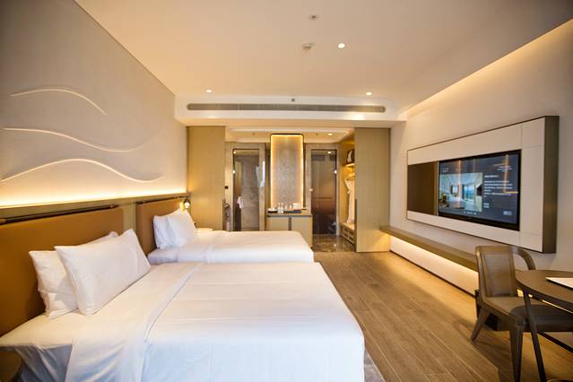 酒店拥有209间以“水的多元形态”为设计主题的客房,所有的房间都拥有观景阳台以及私家泡池。