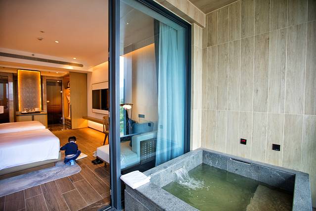 每一寸肌肤都被这矿物质丰富的温泉水滋润着敞开的每一个毛孔,生活和工作压力都抛到九霄云外。