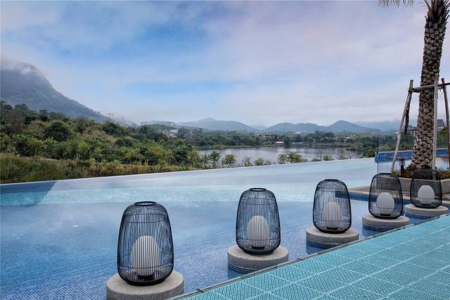在这里可以将园林泳池美景以及绵延的山景尽收眼底。