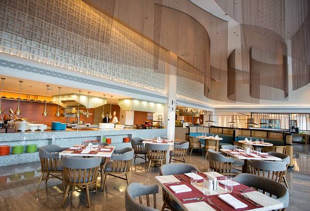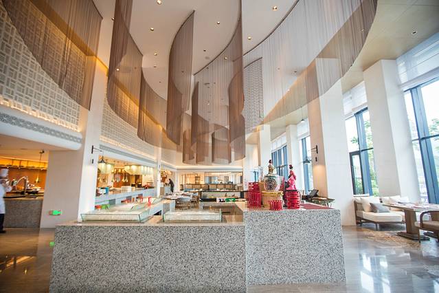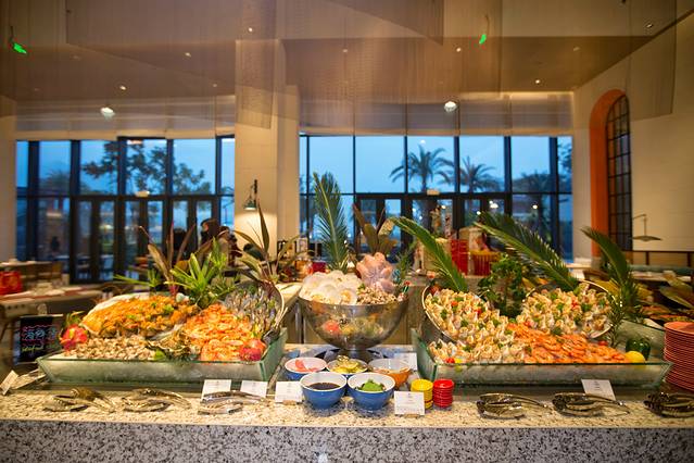 水悦全日餐厅位于酒店1楼,这里的自助餐从海鲜到刺身,从烤肉到甜品,从西班牙风味吃到增城本土特色...上百款菜品,统统无限量任吃!