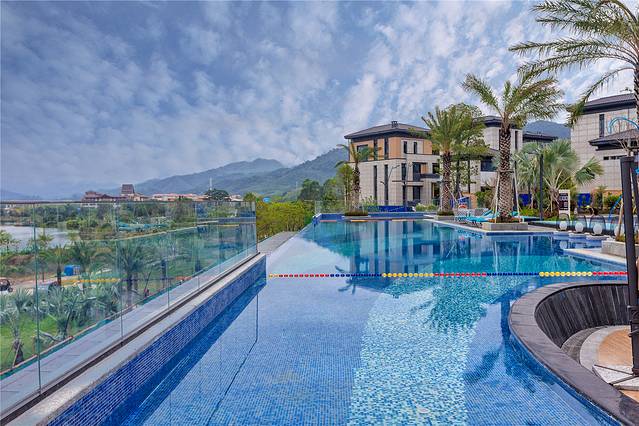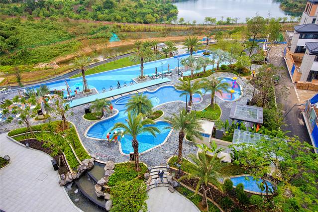 这里毗邻国家4A旅游风景区增城白水寨,风景秀丽环境宜人,主打足不出户的私家泡池,加上儿童设施丰富,非常适合亲子游度假。