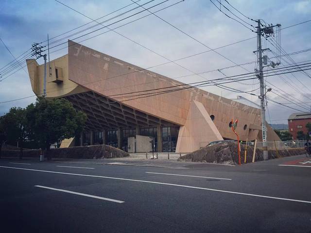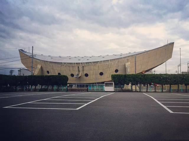 另一座香川县立体育馆是丹下建三载1962—1964年设计的,一起去的小伙伴说这个是参照武士帽子做的,但我怎么都觉的像条鱼。