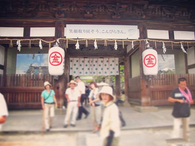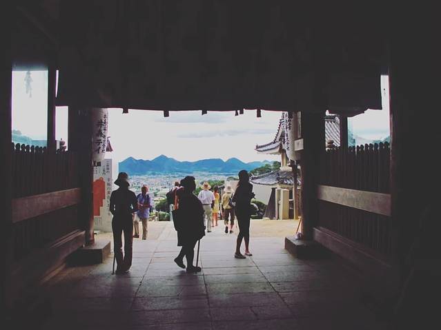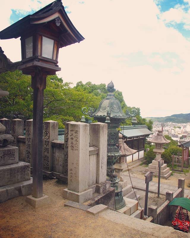 金刀比罗宫的吉祥物是一只小狗,据说是以前一位一直上山烧香的老人,后来年纪大了,就把香火钱放在篮子里让狗狗拿上山,于是狗狗就成了这里的吉祥物。不过似乎还有一种说法是,过去寺庙都是有钱人和社会阶级高的人去的,而这里只要你有佛心,就连小动物, 比如小狗都能进去参拜,因佛祖是不挑人的贵贱的而出名。在这里买了几个狗狗的护身符,回去送人的反响还不错尼。山顶风景却实漂亮,山下的街道有许多小店,时间充裕的话可以去观光和体验下当地民俗。