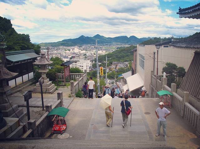 高松比较有名的应该就是栗林公园和香川县西部的金刀比罗宫了。这两个景点去查一下的话,保证有一大堆资料。搭乘轻轨都有相应的站,出站后标示也是相当清楚,跟着指示走就可以了。金刀比罗宫需要爬山,要去的话还是建议舒适的穿着和鞋子。