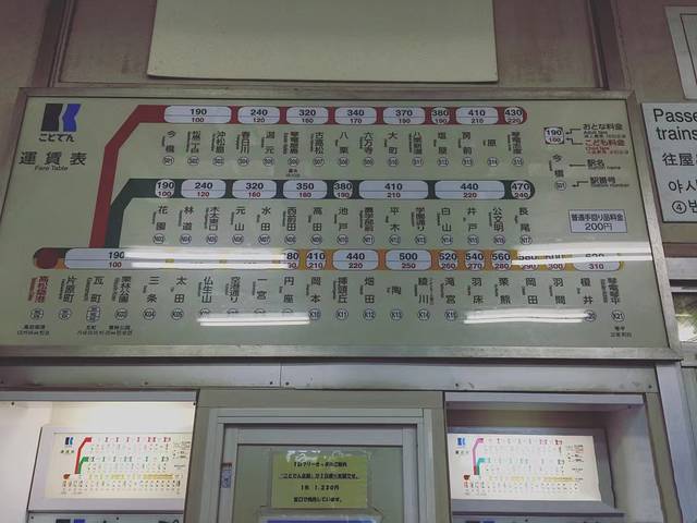 高松 的市内交通相当方便,几乎一条轻轨全部搞定。轻轨一共有三条线,风别是琴平线、志度线和长尾线。每站的标示都是汉字,终点站很小,就在 高松 港,站台分三条,要看清楚每条线的站台是在那个,不然很容易坐错哦。琴平线是我搭乘最多的,可以前往瓦町(购物街)和栗林公园。如果想前往其他地方( 比如 金刀比罗宫),可以参考进站处的大地图。 高松 港的车站还很贴心的有寄存箱哦。