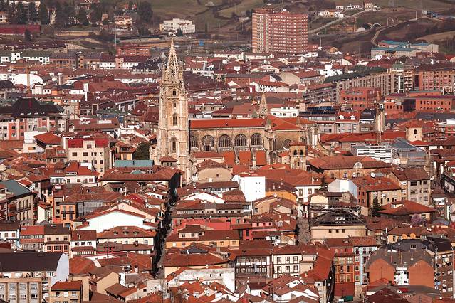 下一站我们来到奥维耶多(Oviedo),位于西班牙北部阿斯图里亚斯自治区内,在坎塔布连山和坎塔布里海之间,风景秀丽。奥维耶多的历史悠久,建于8世纪,曾经是阿斯图里亚斯王朝都城,因而城市中随处可见中世纪阿斯图里亚斯的前罗马式风格。