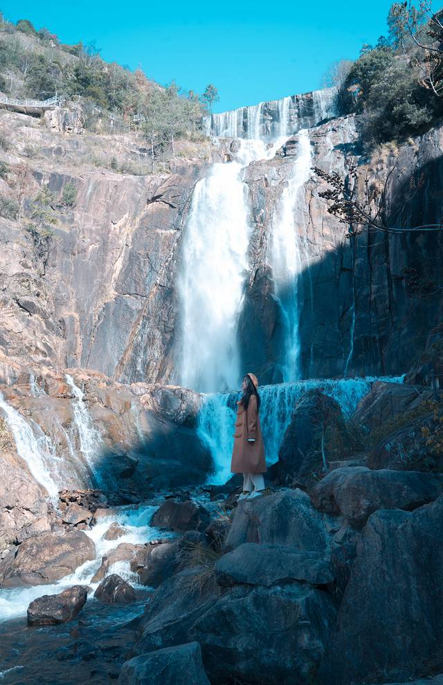走近抬头仰望,层层叠叠瀑布飞流直下,气势磅礴震撼,就像是银河从云雾仙境中落下,李白诗里所写的“飞流直下三千尺,疑是银河落九天”,我在这里找到了答案。