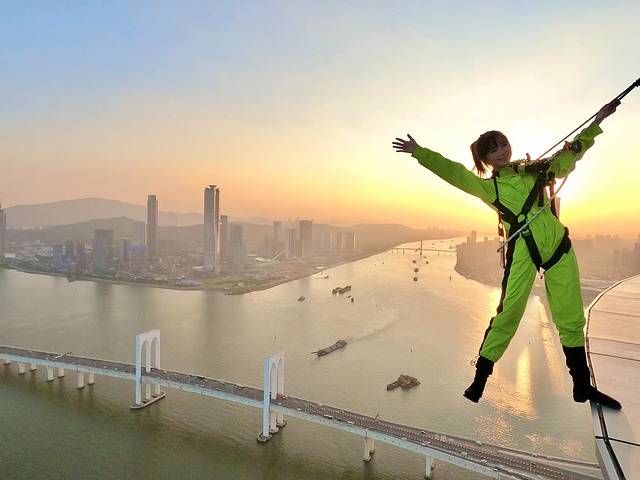除了可以俯瞰全市美景,澳门塔还设有233米的高空蹦极,如果你想拥有一次惊心动魄的旅行体验,从塔上纵身一跃,也是不错的尝试。