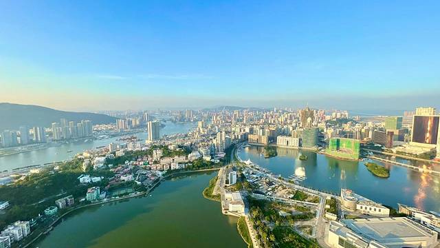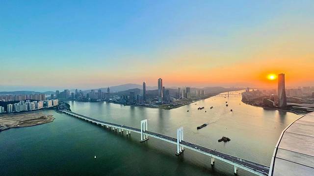 日暮时分,我与男友登上澳门塔,欣赏一场带着电影氛围感的日落,沉浸在夕阳中的澳门,多了几分城市夜景给予的蓬勃之美,夕阳的余晖经云层析出,散落满地光斑,远处的巍巍高楼也罩上金色光辉,我们背靠着背,吹着晚风,看着空中的云卷云舒,看着澳门的万家灯火依次亮起,文艺且温柔,一起看落日的人,或许比落日本身还浪漫。