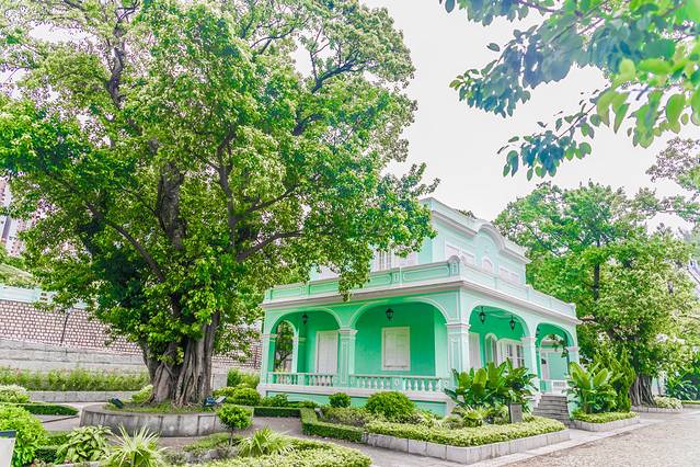 走近龙环葡韵博物馆,目之所及皆是少女们无法拒绝薄荷绿,清新美好,让人仿佛置身童话世界。龙环是澳门氹仔岛的旧称,葡韵是形容这里的葡萄牙建筑风情,这个名字形象贴切的描述了博物馆的特色。