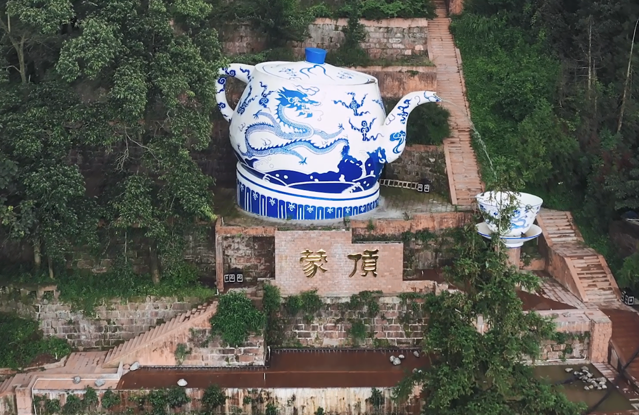 平时周末运气好的话,在这里你还能看到蒙顶山的独门茶技表演:长嘴壶茶技“龙行十八式”称得上是蒙顶山一绝。