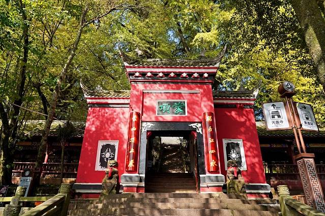 到达山顶,首先映入眼帘的便是这供奉着茶祖吴理真的天盖寺,寺周千年银杏环绕,那金黄中的一摸红透漏着庄严与古朴的韵味,闭上眼认真感受,仿佛还能闻到淡淡的茶香,让人沉醉其中。