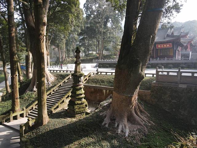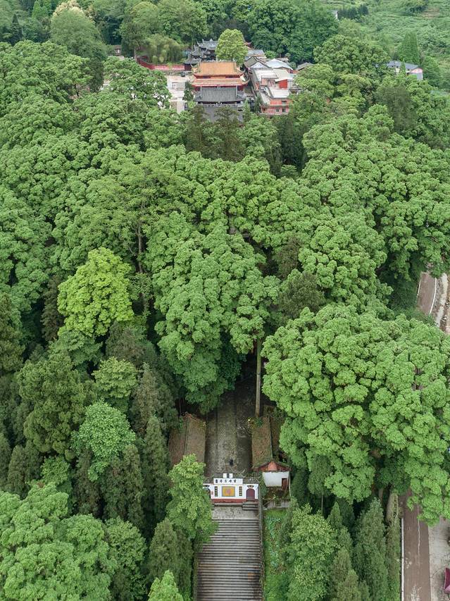古楠,指的是寺庙及其周围生长着桢楠、银杏等名贵林木。这些珍稀古树以桢楠为主,树干粗壮,高耸入云。最大的要六人才可合围,堪称"桢楠王",是西南地区罕见的珍稀古桢楠植物群落,为古刹增添了不少亮色。