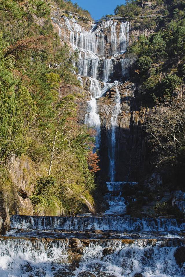 虽然发达的交通和通讯拉近了彼此的距离,但我还是喜欢顺着登上台阶,从瀑布底端有台阶步道可以行至瀑布顶部,一步一个脚印,慢慢感受沿途的风光和花花草草,很是让人明朗