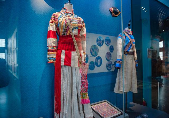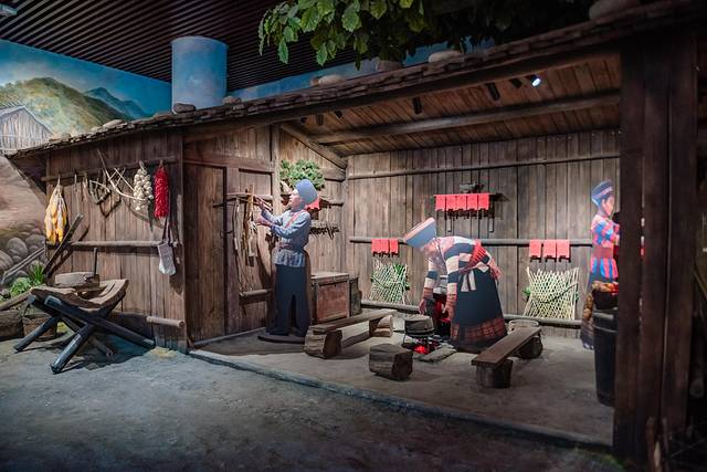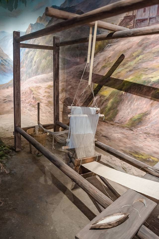 但我最感兴趣的还是2楼关于德昌傈僳族的来历,原来不只是 云南 有,德昌也是 四川 省最大的傈僳族聚集县,电梯开门的一瞬间,首先映入眼帘就是制作精美的傈僳服装和一片早期傈僳人早期的古老生活习惯,其生态火草织布技艺,婚俗、阔时节,如今看来都是非常珍贵的文化遗产。