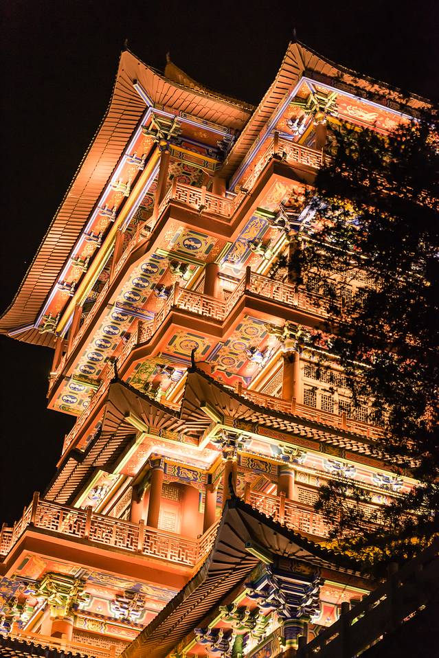 在抵达德昌之前,远远就能看到一座高耸入云的阁楼, 明光 辉煌,在茫茫黑夜中指引着前进的方向。