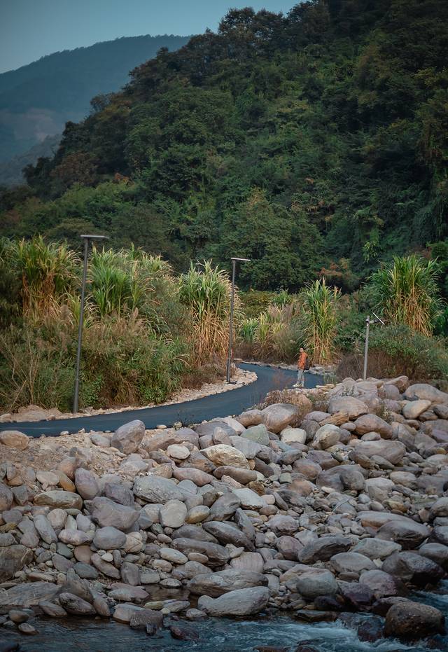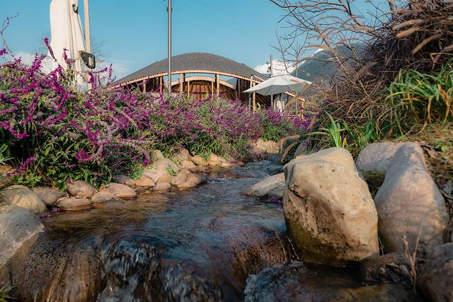 比起纯徒步栈道,这里真的很符合我的“胃口”,往上走了几百米,我们就在河谷旁发现了一座造型奇特的茶肆,和朋友挑了一个不错的位置,点上一杯茶水,闭上眼睛,自在的享受这充满生机的环境,平日里的烦恼和焦虑,都被这片清静抛到了脑后。