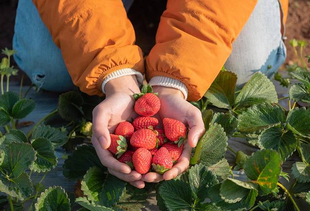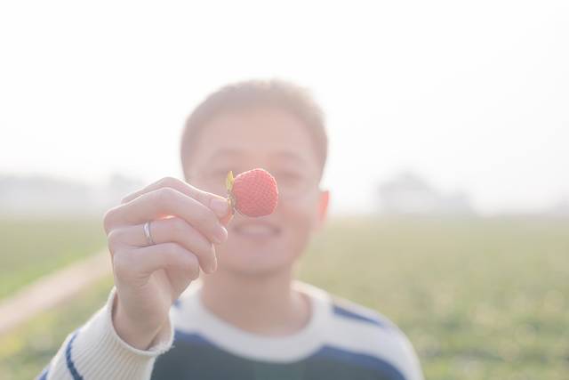 如果想要自己上手采摘,只需自己拿个框,下到地里采摘即可,摘草莓不按人头算,每斤10元,在蓝天白云的映衬之下,恍惚之间,总有一种春天的感觉,谁能相信12月的冬天还能在田间地头摘草莓